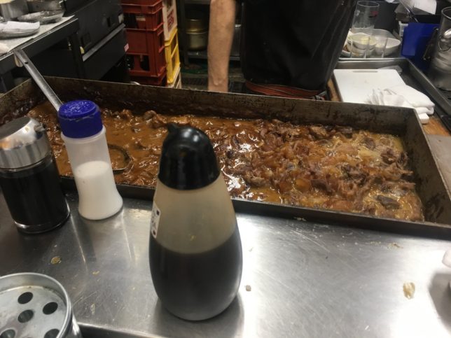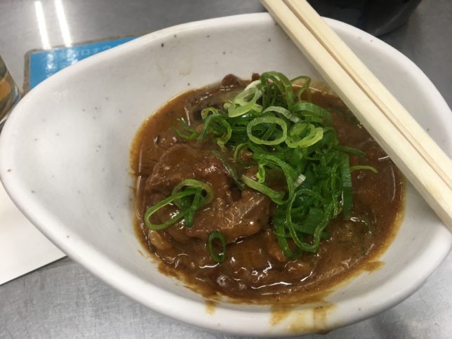 【どて焼き】営業時間中にずっと世話をし続けている『どて焼き』牛すじ肉などを味噌とザラメで。甘くクセになる!